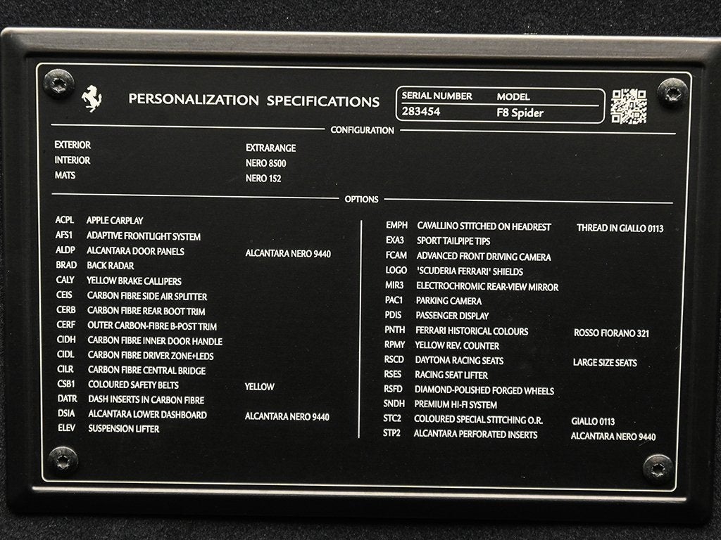 Introducing the 2022 F8 Spider in Rosso Fiorano to Ferrari of Austin! With 3,520 on the odometer, this striking F8 Spider is powered by a 3.9-liter twin-turbocharged V8 mounted in a rear mid-engine configuration, delivering an extraordinary 710 horsepower and 568 lb-ft of torque, paired to a lightning-fast 7-speed dual-clutch transmission. Engineered with technology derived from Ferraris racing programs, it represents one of the most powerful and responsive non-special-series V8 engines ever produced by Ferrari. Exterior highlights: Yellow Modena brake calipers, Carbon fiber lateral air intake splitters, Carbon fiber luggage compartment accents, Sports tailpipe tips, "Scuderia Ferrari" shields on fenders. Interior highlights: Center door card in Alcantara, Inner door handles in carbon fiber, Carbon fiber dashboard accents, Lower dashboard area in Alcantara, Embroidered Cavallino emblem on headrest, yellow tachometer dial face, Daytona racing seats in carbon fiber, Daytona insert panels in Alcantara. This F8 Spider benefits from a Genuine Maintenance service 7-year warranty until 10/25/2029 for utmost peace of mind. The Original Manufacturers Suggested Retail Price was $413,105. We offer Ferrari Financial Services on all Pre-Owned Ferrari Inventory, with terms from 12-84 months. A true expression of Ferrari engineering and design, this 2022 F8 Spider delivers uncompromising performance paired with the unmistakable thrill of open-top driving an experience reserved for those who expect nothing less than excellence. For more information, please call one of our Ferrari Specialists today at 512.380.0231!