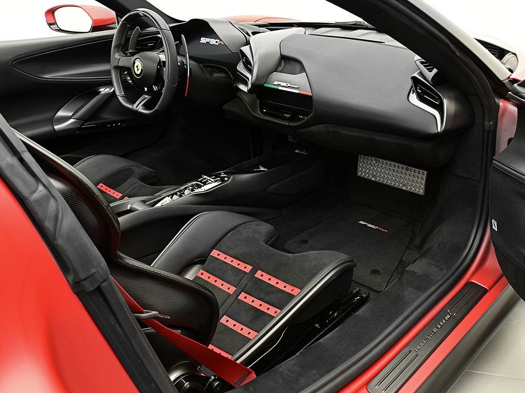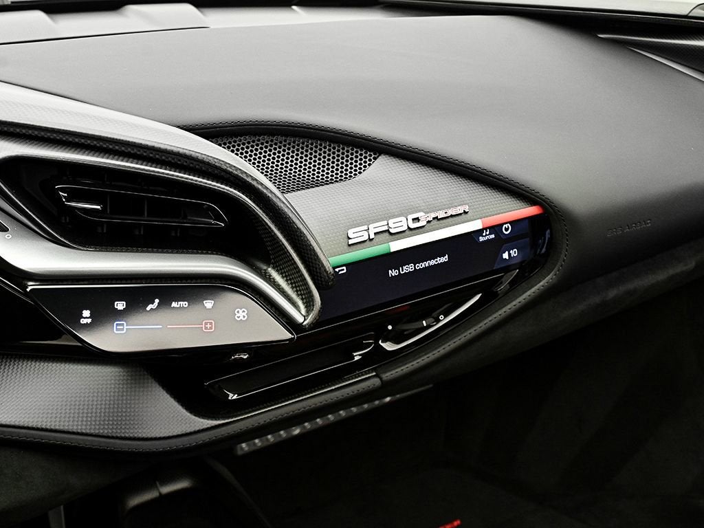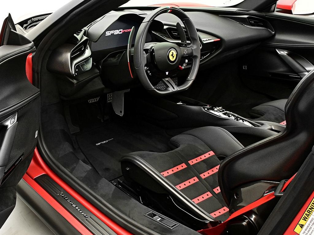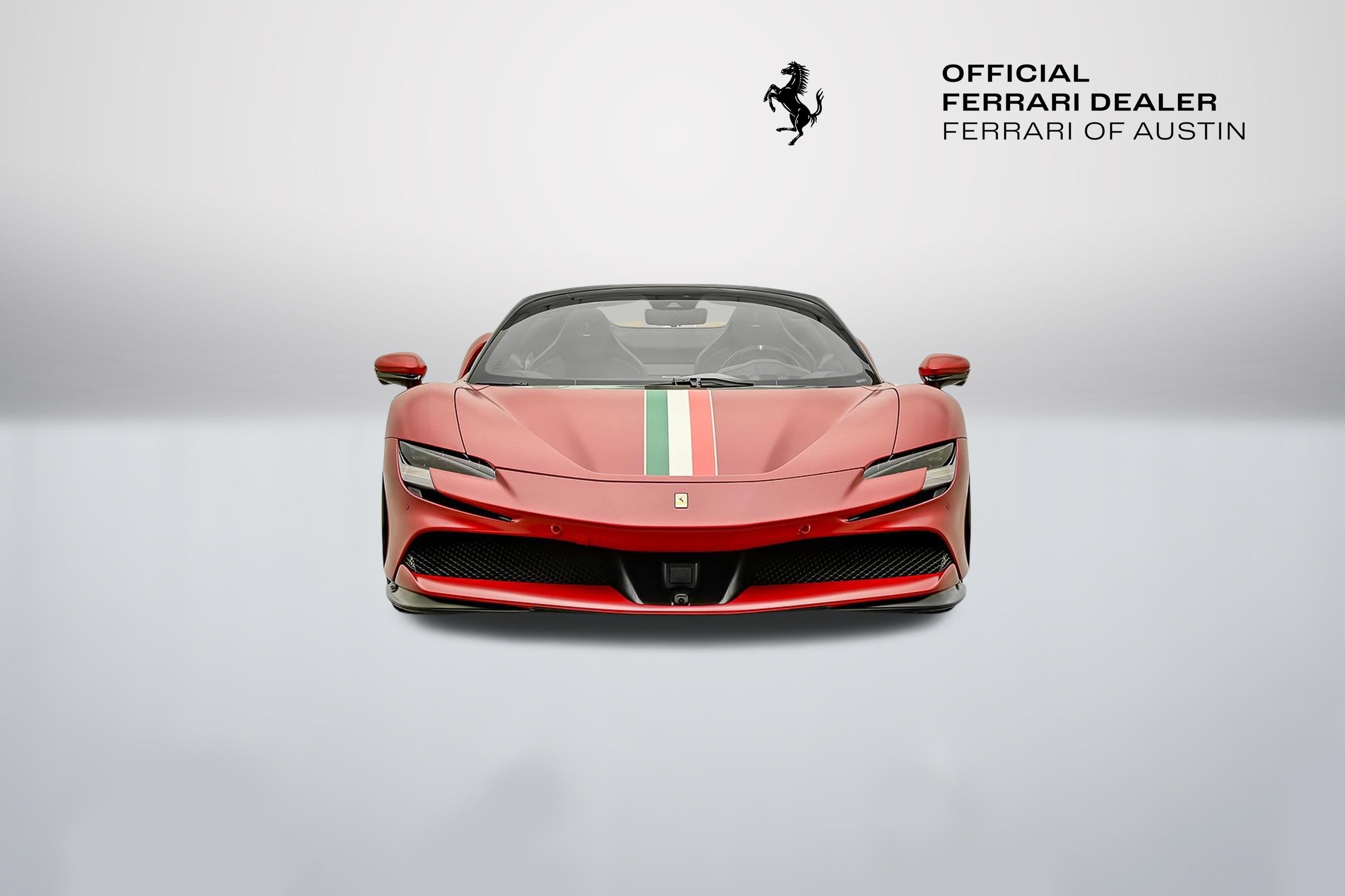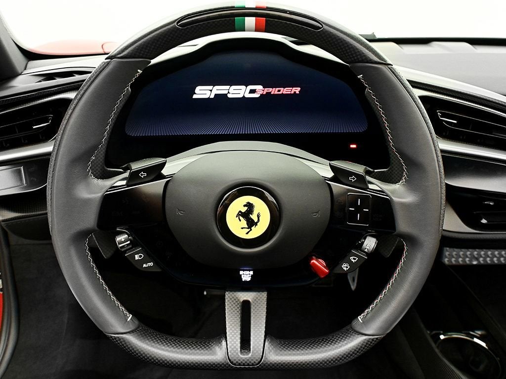 Introducing the 2022 SF90 Spider in Rosso F1-75 matte to Ferrari of Austin! This SF90 Spider with only 2,022 miles on the odometer, sets a new benchmark. Its hybrid powertrain is anchored by a 4.0L twin-turbo 90-degree V8 rated at 769 hp, paired with a trio of electric motors (generating 217 hp). By their combined power, the twin turbo V8 and trio of electric motors deliver a record-breaking 986 horsepower. Exterior highlights: Assetto Fiorano, Rosso Corsa brake calipers, gloss carbon fiber engine intakes, carbon fiber rear screen accents, carbon fiber under door trim, carbon diffuser, gloss carbon front spoilers, titanium wheel studs, titanium tailpipes, satin prancing horse and Ferrari badge, satin Cavallino, matte special paint color, Forged diamond polished wheels with gloss grey, Italian livery, Interior highlights: Color matched alcantara center part of seats, carbon air vents, carbon upper dash, carbon driver zone, carbon fiber dash accents, tri-color F1 paddles, Italian flag painted on dashboard, Daytona racing seats, Italian flag stitched on headrest, Embroidered red Cavallino on headrest, Red colored safety belts, AppleCarPlay, Adaptive cruise control, Advanced front driving camera, surround view, Premium HI-FI system, key fob with gloss carbon accents, This SF90 Spider benefits from a Genuine Maintenance service 7-year warranty until 03/22/2030 for utmost peace of mind followed by a 4 year emissions warranty ending in 03/22/2030. The Original Manufacturers Suggested Retail Price was $945,341 We offer Ferrari Financial Services on all Pre-Owned Ferrari Inventory, with terms from 12-84 months. A true expression of Ferrari engineering and design, this 2022 SF90 Spider delivers uncompromising performance paired with the unmistakable thrill of open-top driving an experience reserved for those who expect nothing less than excellence. For more information, please call one of our Ferrari Specialists today at 512.380.0231!
