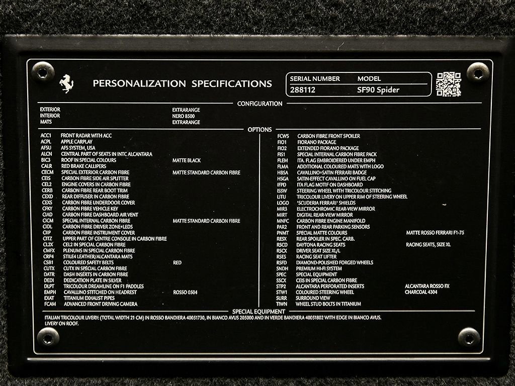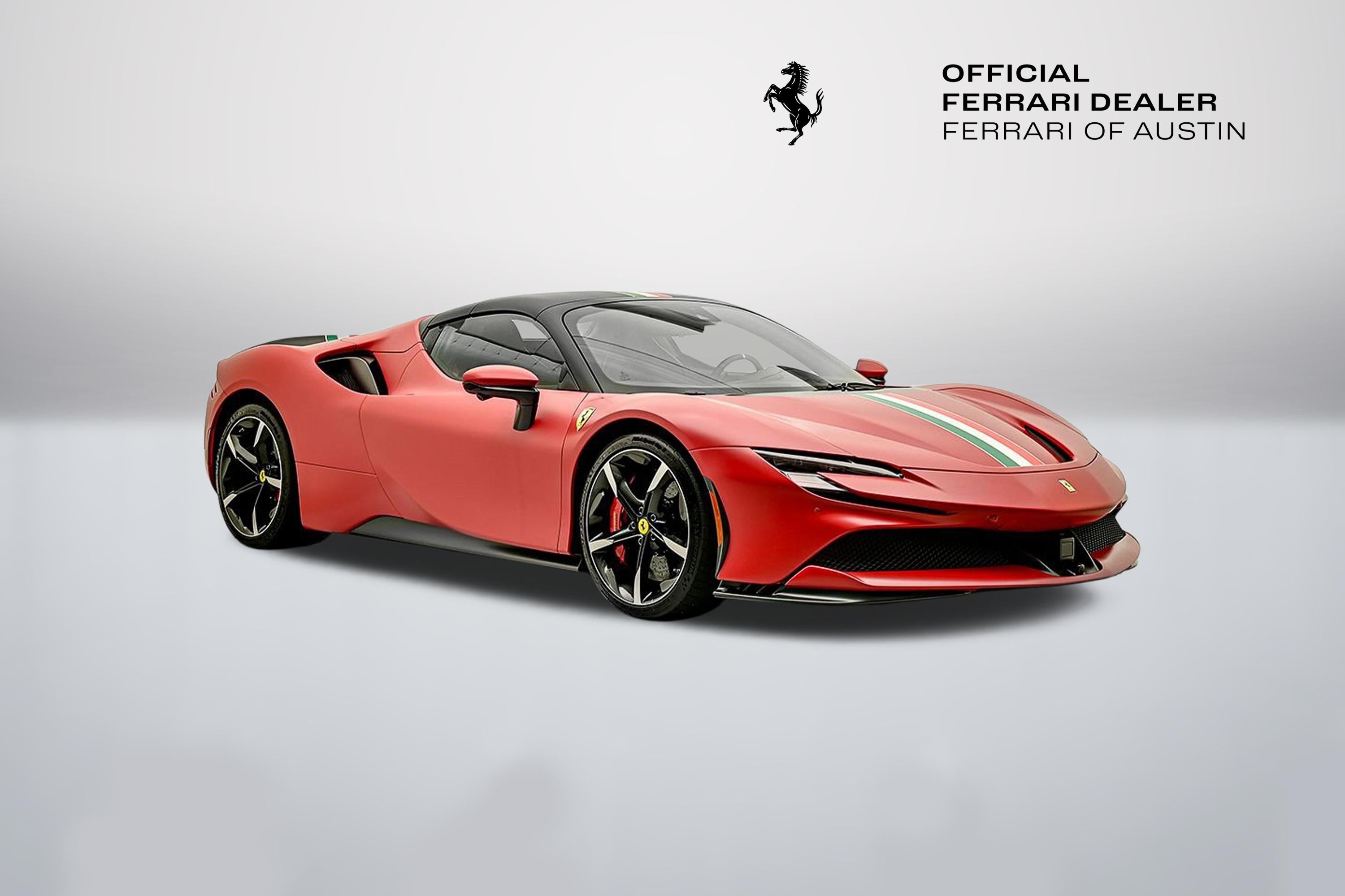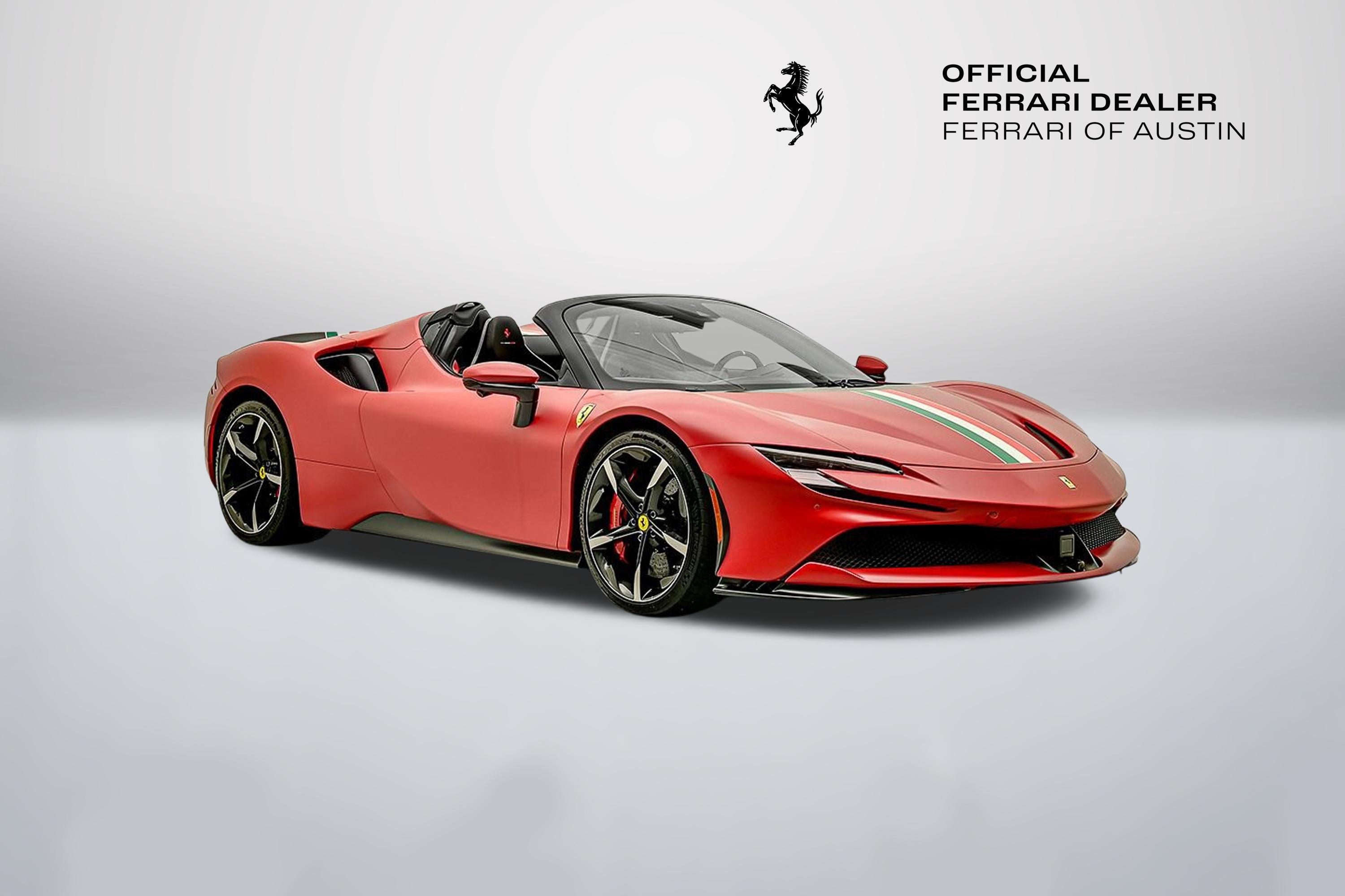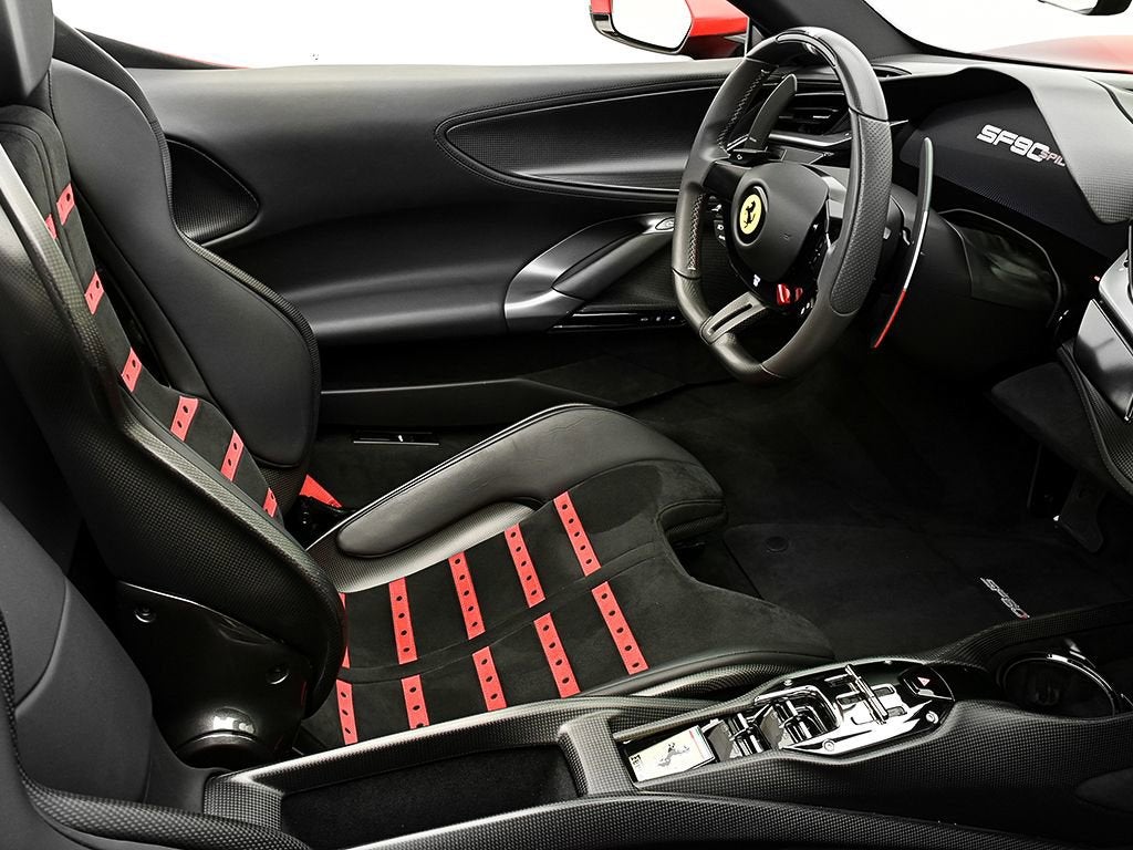 Introducing the 2022 SF90 Spider in Rosso F1-75 matte to Ferrari of Austin! This SF90 Spider with only 2,022 miles on the odometer, sets a new benchmark. Its hybrid powertrain is anchored by a 4.0L twin-turbo 90-degree V8 rated at 769 hp, paired with a trio of electric motors (generating 217 hp). By their combined power, the twin turbo V8 and trio of electric motors deliver a record-breaking 986 horsepower. Exterior highlights: Assetto Fiorano, Rosso Corsa brake calipers, gloss carbon fiber engine intakes, carbon fiber rear screen accents, carbon fiber under door trim, carbon diffuser, gloss carbon front spoilers, titanium wheel studs, titanium tailpipes, satin prancing horse and Ferrari badge, satin Cavallino, matte special paint color, Forged diamond polished wheels with gloss grey, Italian livery, Interior highlights: Color matched alcantara center part of seats, carbon air vents, carbon upper dash, carbon driver zone, carbon fiber dash accents, tri-color F1 paddles, Italian flag painted on dashboard, Daytona racing seats, Italian flag stitched on headrest, Embroidered red Cavallino on headrest, Red colored safety belts, AppleCarPlay, Adaptive cruise control, Advanced front driving camera, surround view, Premium HI-FI system, key fob with gloss carbon accents, This SF90 Spider benefits from a Genuine Maintenance service 7-year warranty until 03/22/2030 for utmost peace of mind followed by a 4 year emissions warranty ending in 03/22/2030. The Original Manufacturers Suggested Retail Price was $945,341 We offer Ferrari Financial Services on all Pre-Owned Ferrari Inventory, with terms from 12-84 months. A true expression of Ferrari engineering and design, this 2022 SF90 Spider delivers uncompromising performance paired with the unmistakable thrill of open-top driving an experience reserved for those who expect nothing less than excellence. For more information, please call one of our Ferrari Specialists today at 512.380.0231!