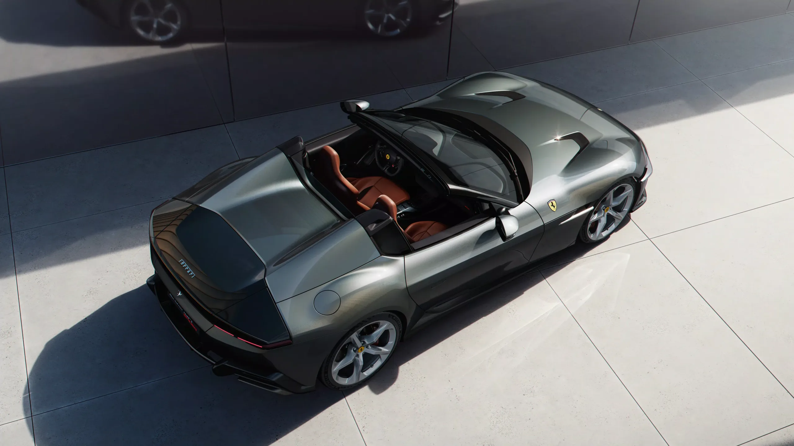 This car differs from the Ferrari 12Cilindri in the boldly expressive character created by the two buttresses at the rear, behind which an element with a black-screen effect is set. The crease lines evident on the buttresses clearly echo the motif of the flank, accentuating the expressiveness of the design of these elements. Set into the flank is a ‘quarterlight’ in back-painted polycarbonate. 12Cilindri Spider is stunningly beautiful, and with the top open immerses the driver into the world around them for maximum driving pleasure.